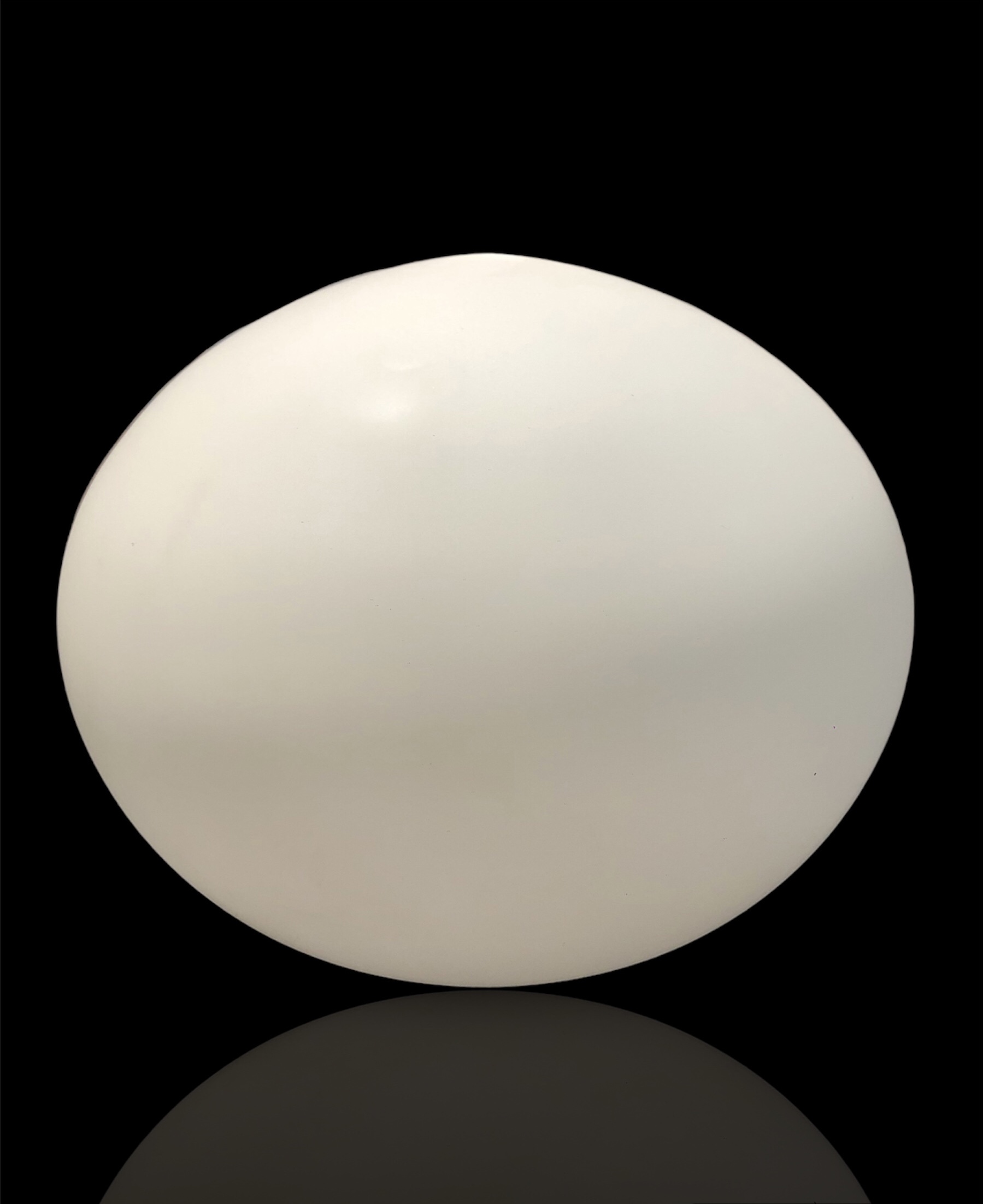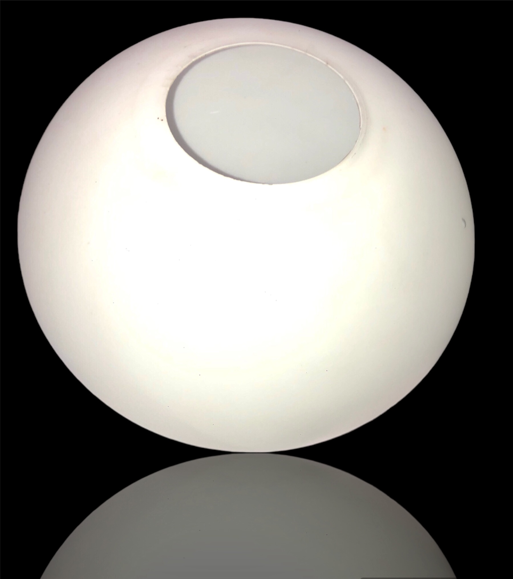 Γυαλί οπαλίνας σε ιδιαίτερο σχήμα μπάλας που θυμίζει burger. Η διάμετρος είναι στα 23cm, με ύψος 18cm, ενώ η διάμετρος της τρύπας είναι 7,5cm. Κατάλληλο για ντουί Ε27