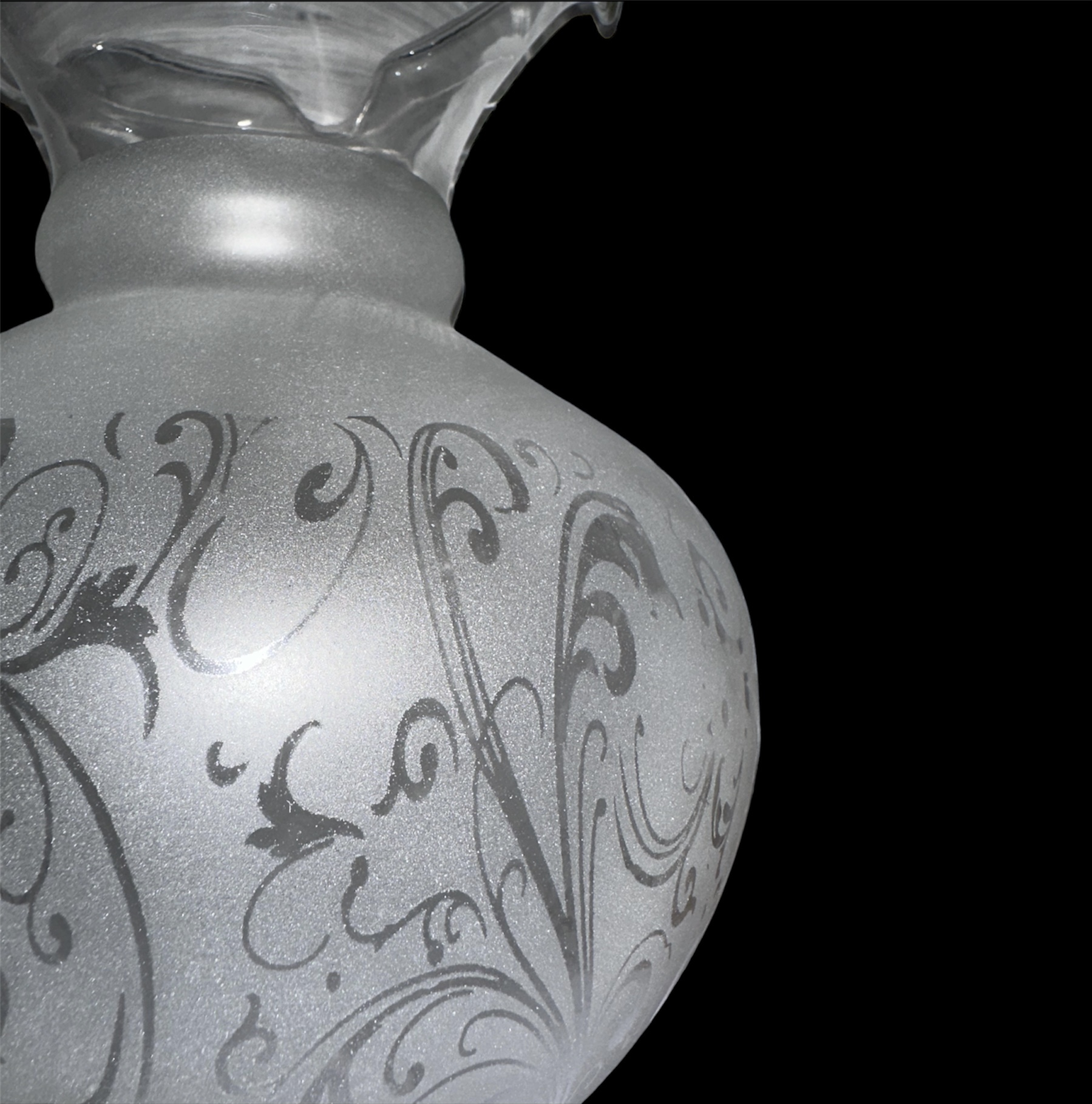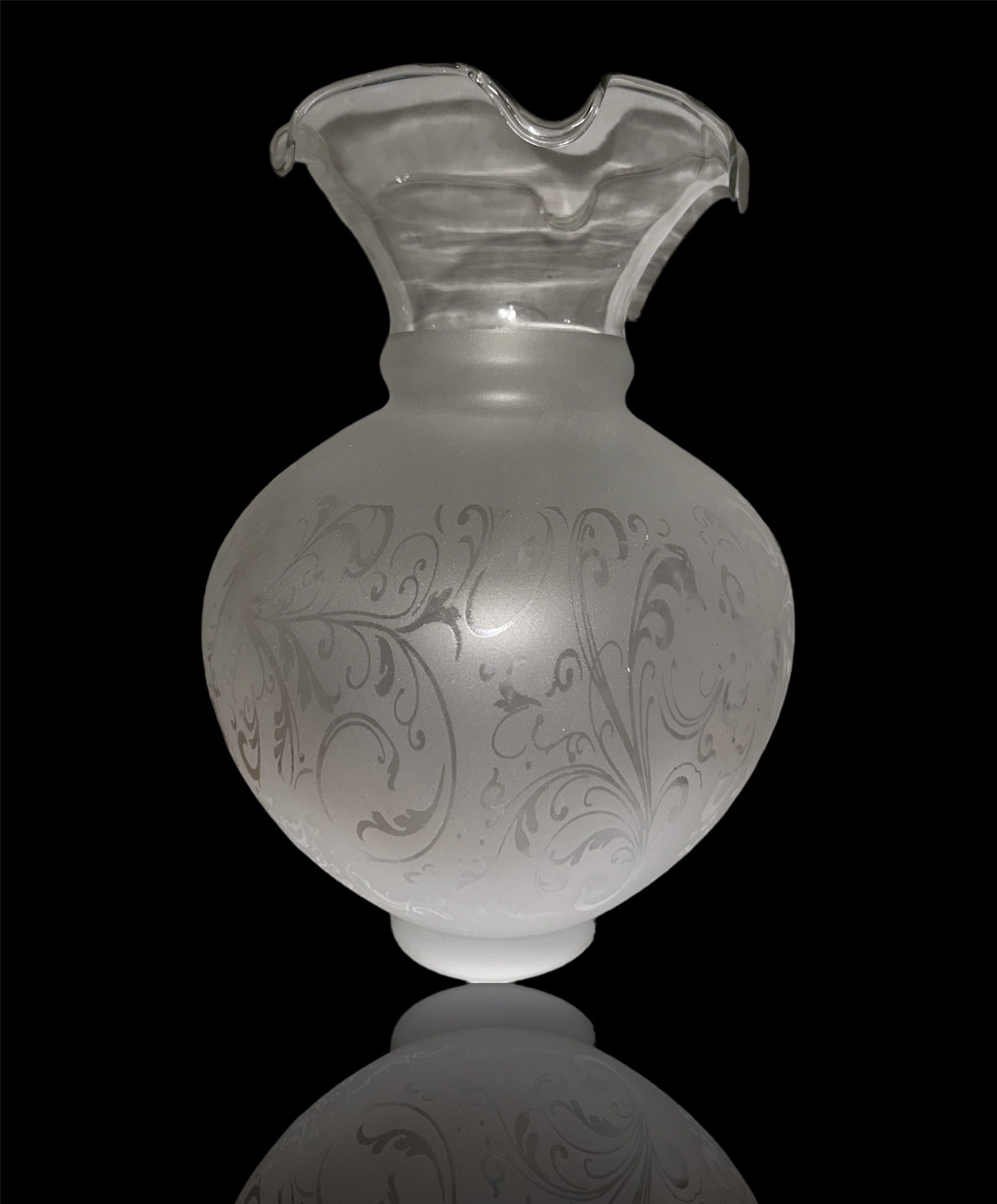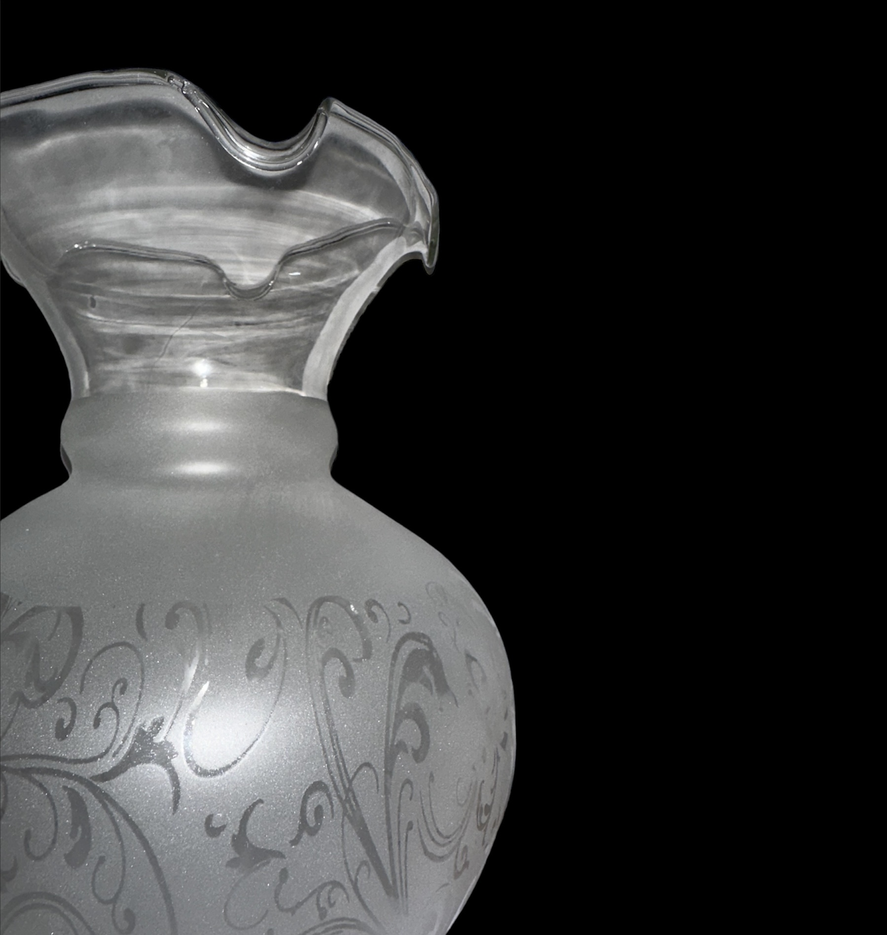 Κλασικό γυαλί λάμπας με ντεκόρ κατάλληλο για επιτραπέζιες λάμπες με λαμάκι. Οι διαστάσεις είναι 8cm λαιμό και 29cm ύψος.