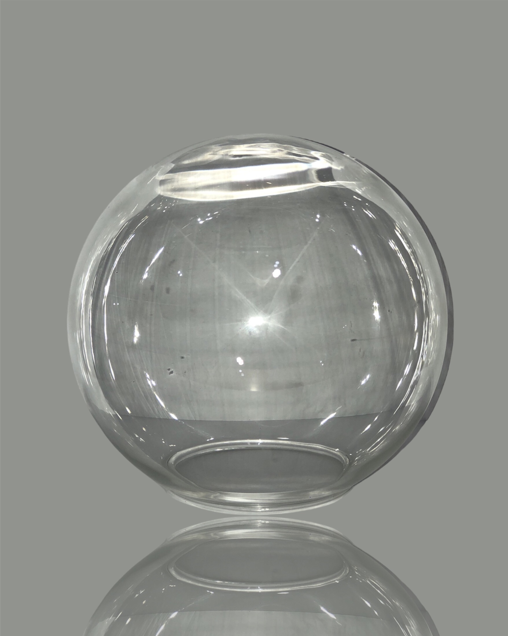 Γυαλί μπάλα διάφανη 20cm με τρυπα 6,5cm το οποίο είναι κατάλληλο για ντουί Ε27