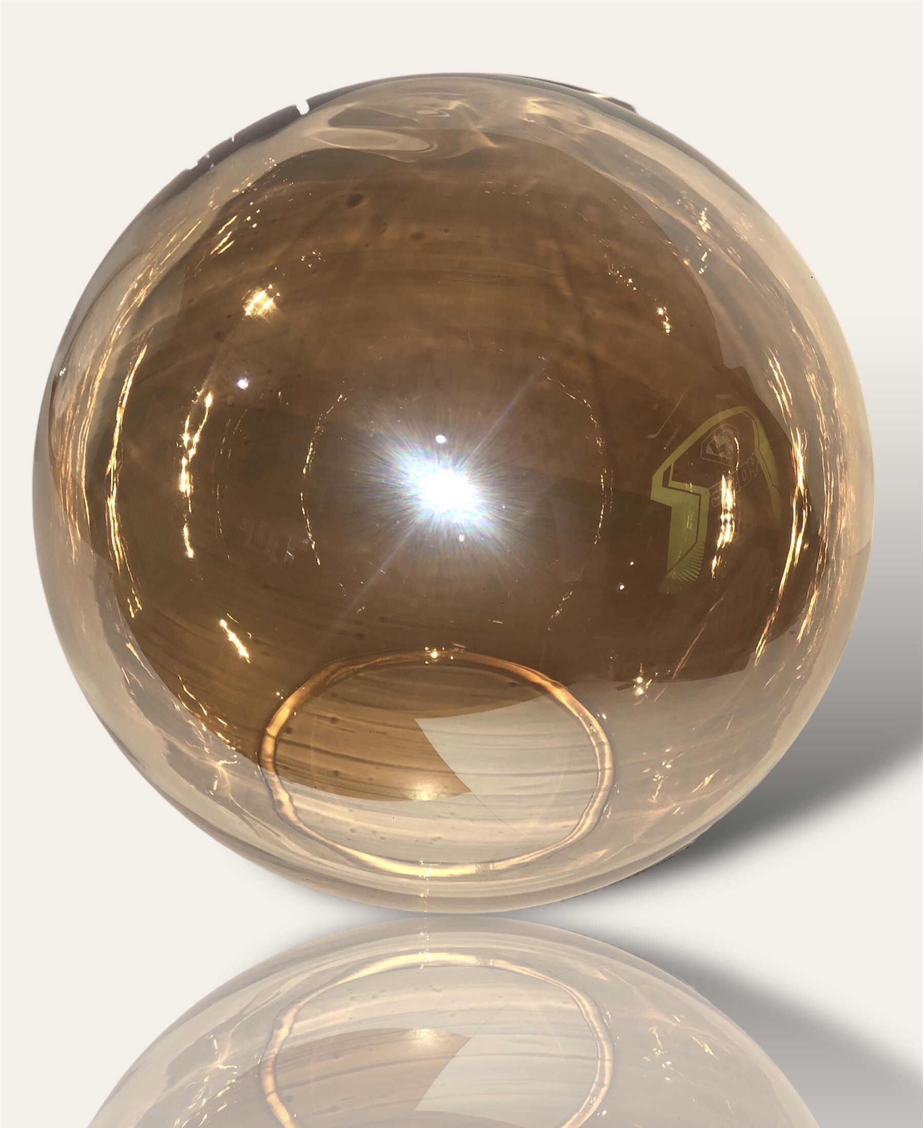 Γυαλί μπάλα μελί 13cm με τρύπα διαμέτρου 5,5cm, το οποίο είναι κατάλληλο για ντουί Ε27